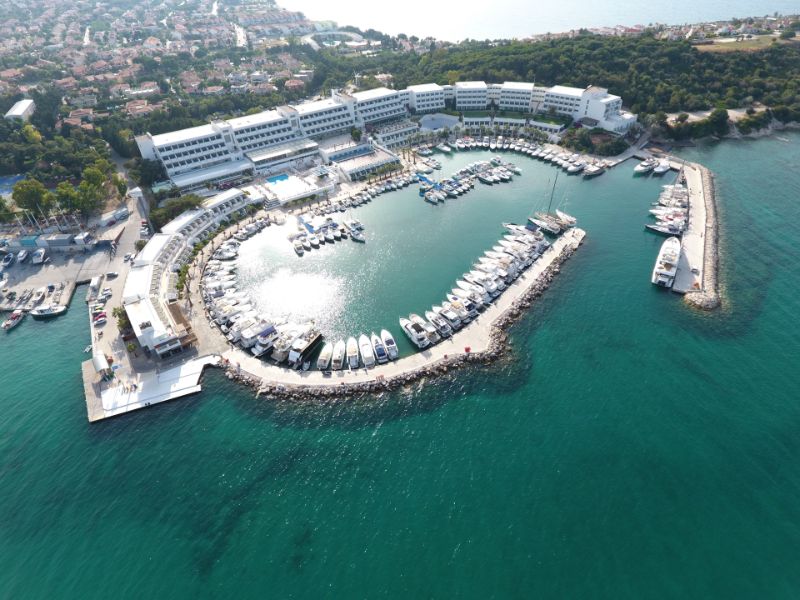Deniz suyu kullanılan 2 adet açık yüzme havuzu, 2 adet kapalı havuz, 1 adet çocuk havuzu ve termal su kullanılan 1 adet açık, 1 adet kapalı yüzme havuzu bulunmaktadır. Tesise sıfır konumda bulunan özel plaj 250 metre uzanlığa sahiptir. Mavi bayraklı kum plajda şezlong, minder ve havlu ücretsizdir.