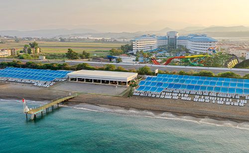 Denize 50 metre mesafede olan tesis ince kumlu özel plaja sahiptir. Otelde açık yüzme havuzları, kapalı ve ısıtmalı yüzme havuzları, kaydıraklı yüzme havuzları ve çocuk havuzları vardır.